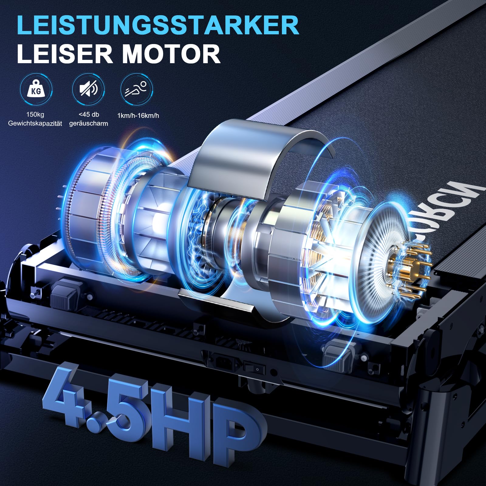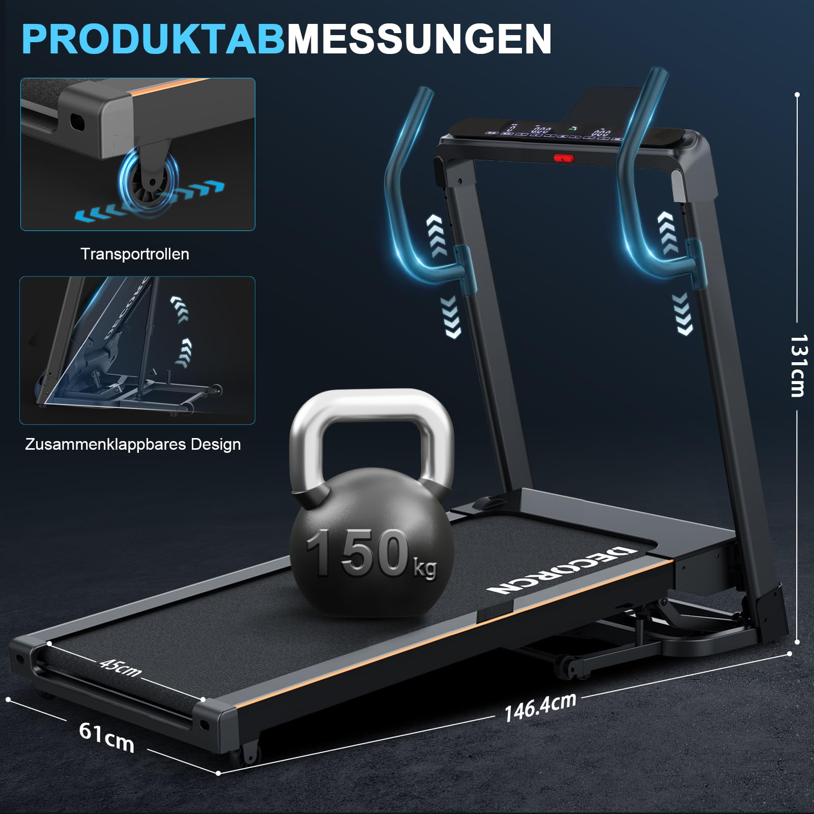 Decorcn Laufband klappbar – 4,5 PS, 16 km/h, 20 Stufen, 150 kg