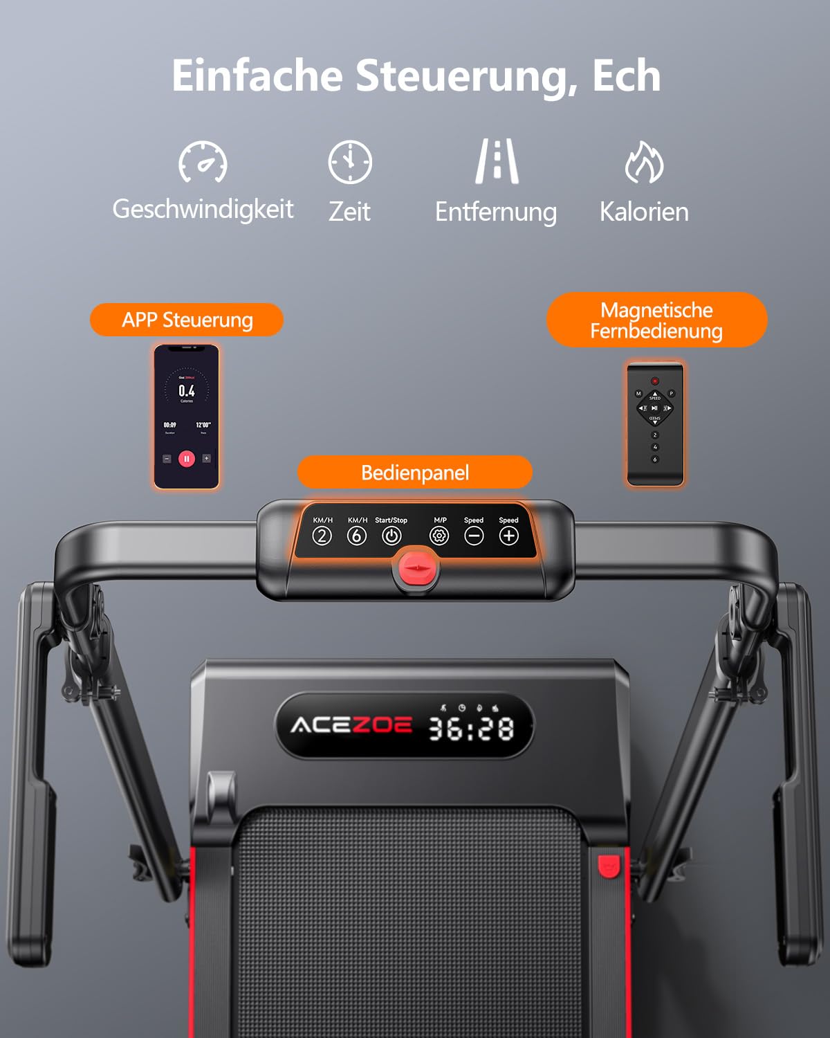 - 【6 IN 1 Laufband mit Neigung】 ACEZOE ist auf Laufband für Zuhause spezialisiert. Das verbesserte, klappbare Modell P20 lässt sich dank der klappbaren Säule im Handumdrehen in eine walking pad verwandeln. Durch Anheben der Säule wird es zu einem professionellen Laufband. Das nahtlose Zusammenklappen und Aufstellen ermöglicht einen einfachen Übergang zwischen Geh- und Lauftraining.6-in-1 Training mit Geschwindigkeiten von 1–12 km/h für Spaziergang, Fettverbrennung, Jogging oder Sprint.Ob zu Hause oder bei der Arbeit – dieses tragbares laufband für zuhause ist wie Ihre persönliche Laufstrecke und unterstützt Sie dabei, einen gesunden Körper zu erreichen.