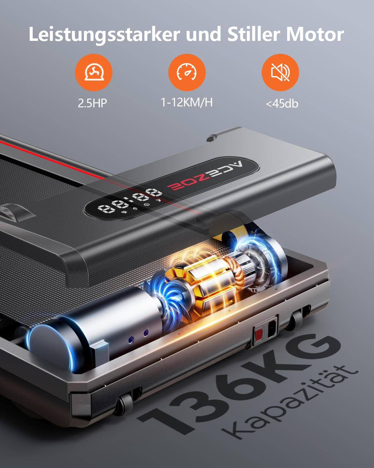 - 【Leistungssteigerung & Seelenfrieden】 Dieses Laufband für Zuhause mit Neigung ist mit einem verbesserten 2,5-PS-Lärmmotor ausgestattet, dessen Betriebsgeräusch weniger als 45 dB beträgt,ohne Ihre Familie und Nachbarn zu stören. Die 136 kg starke Tragkonstruktion sorgt in Kombination mit dem 40 x 100 cm breiten Laufband für ein gleichmäßiges und stabiles Training auch über längere Zeiträume und erfüllt die Anforderungen des professionellen Einsatzes.Acezoe bietet Ihnen einen 24/7-Kundenservice, zwei Jahre Garantie und lebenslangen technischen Support. Bei Fragen kontaktieren Sie unseren Kundenservice gerne per E-Mail. Wir beantworten Ihre Fragen umgehend.